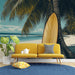 Mural Wallpaper beach | Tropical ambiance with palm trees and surfboard