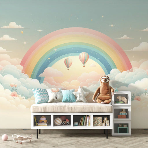 View full detailsRainbow Mural Wallpaper | Hot Air Balloons, Clouds on Pastel Background