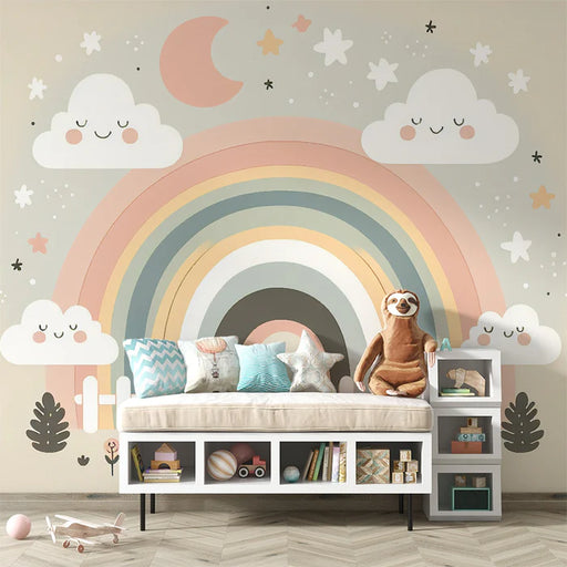 View full detailsRainbow Mural Wallpaper | Pink Clouds, Stars, and Crescent Moon