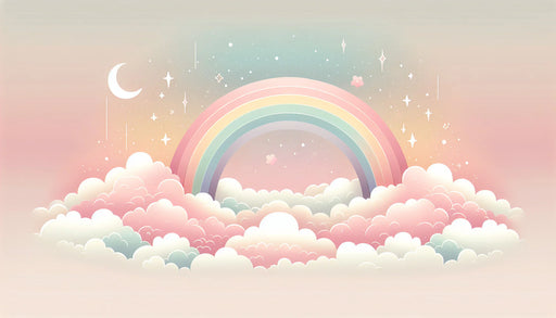 Rainbow Mural Wallpaper is a stunning addition to any room, featuring a whimsical design of pink clouds, stars, and a crescent moon. This wallpaper...