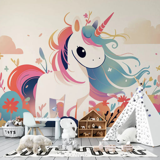 View full detailsUnicorn Mural Wallpaper | Rainbow, Clouds, and Flowers