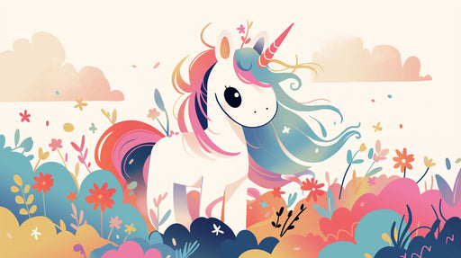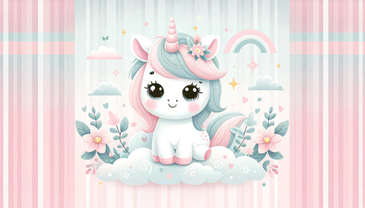 This enchanting wallpaper features an adorable unicorn in vibrant colors, surrounded by whimsical flowers and soft clouds. The multicolored mane an...