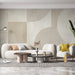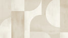 This wallpaper features an artistic composition of geometric shapes, blending half circles and rectangles in shades of beige and cream. The subtle play of textures — between fine grain and a more raw appearance — creates an intriguing visual depth, giving the space a calm and refined atmosphere.