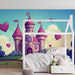 With its pastel shades and cheerful design, this mural wallpaper fits perfectly in a child's bedroom or playroom, bringing a warm and imaginative atmosphere. The playful visual elements foster a stimulating environment for imaginative development.