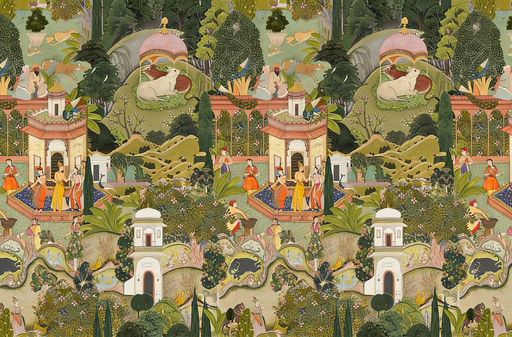 Retro Jaipur Garden Wallpaper is more than a surface design; it is a portal to the serene grandeur of a bygone era. With its soft, weathered palett...