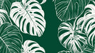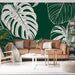 Mural Wallpaper tropical foliage | White monstera leaves on deep green background
