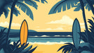 Mural Wallpaper beach | Surf and palm trees in tropical silhouette