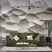 Discover our beautiful mural wallpaper with a relief effect, offering a three-dimensional texture that adds depth and interest to your walls. This contemporary design, with its sculpted shapes and shades of white, creates a sense of lightness and elegance in any room.