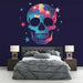 This mural wallpaper features a vibrant cosmic skull on a deep midnight blue background, adorned with stars and nebulas in shades of pink, blue, and yellow, creating an atmosphere that is both mysterious and captivating. The smooth texture and quality of the details give an almost real feeling to the illustration, making it lively and dynamic.