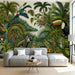 Parrot Mural Wallpaper | Tropical Jungle with Toucans, Monkeys, and Parrots