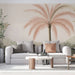 This mural wallpaper evokes a tropical ambiance with its majestic palm trees and its soft background in pastel shades. The delicate leaves are finely illustrated, creating a soothing and elegant effect that catches the eye. The blend of colors, ranging from pink tones to subtle greens, evokes the serenity of a paradise island.
