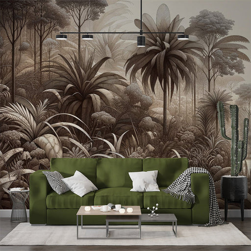 View full detailsJungle Mural Wallpaper | Monochrome Tropical Forest with Variety of Plants and Palm Trees